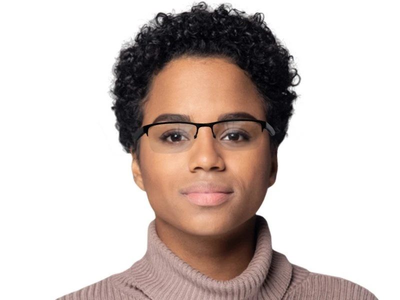 quadratische und rechteckige Gesichtsformen. Die Hauptfarbe des Rahmens ist