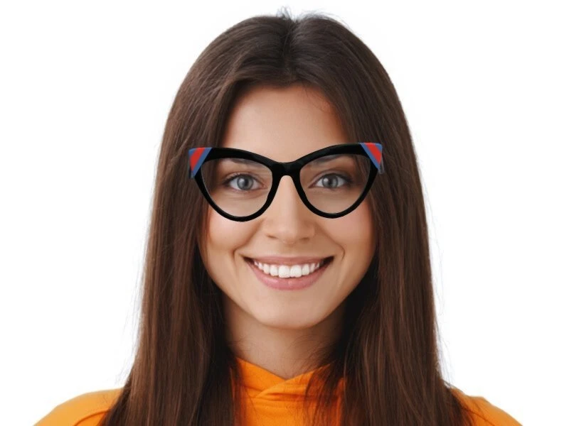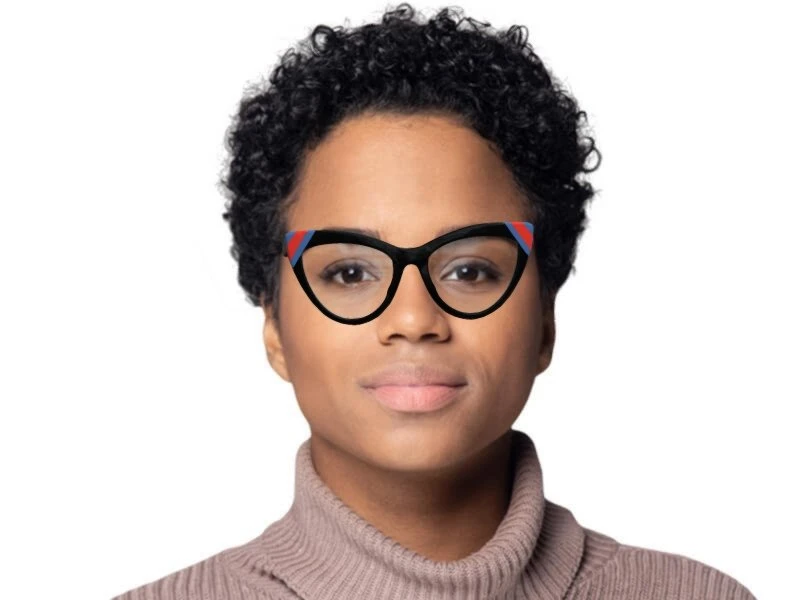 Gesichtsformen. Die Hauptfarbe des Brillenrahmens ist Schwarz. Er lässt sich