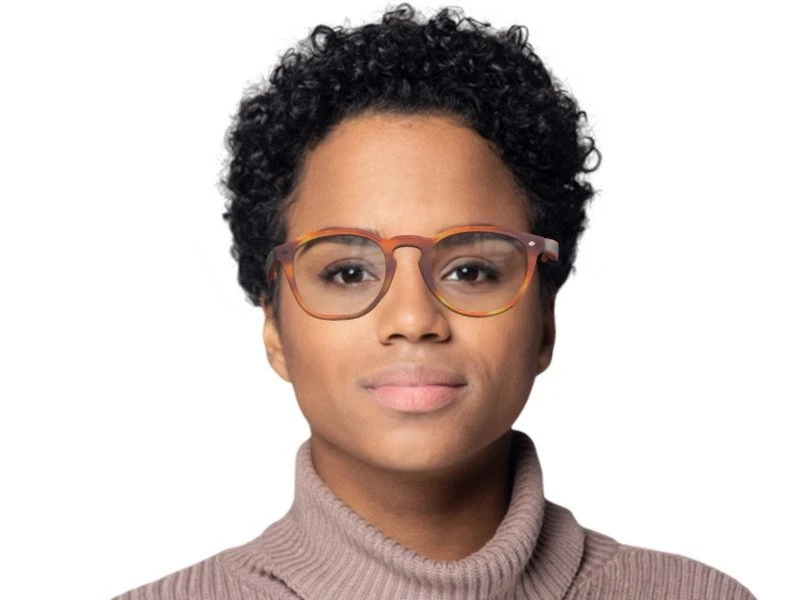 quadratischen und dreieckigen Gesichtsformen. Die Farbe des Rahmens nutzt ein