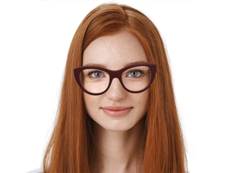 eher ovalen und rechteckigen Gesichtsformen. Die Rahmenfarbe ist Burgund. Damit
