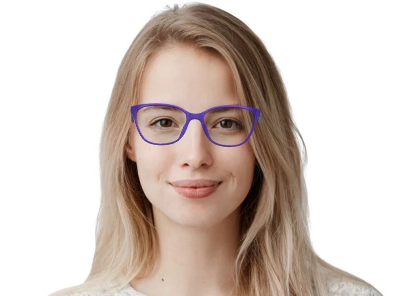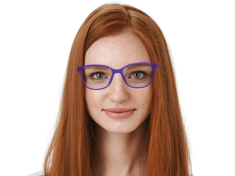 diamantenen und runden Gesichtsformen. Die Rahmenfarbe ist Violett und passt