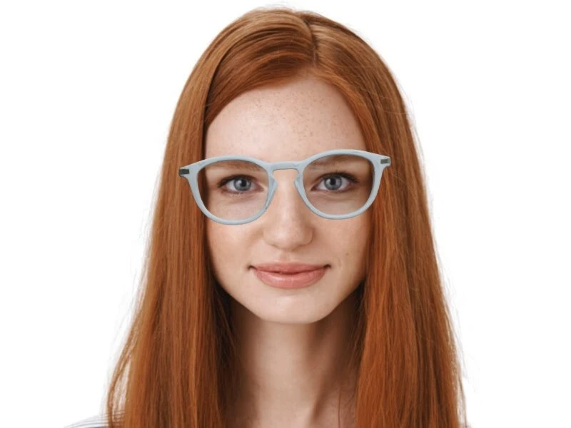 rechteckige Gesichtsformen. Der Rahmen ist transparent und folgt damit dem