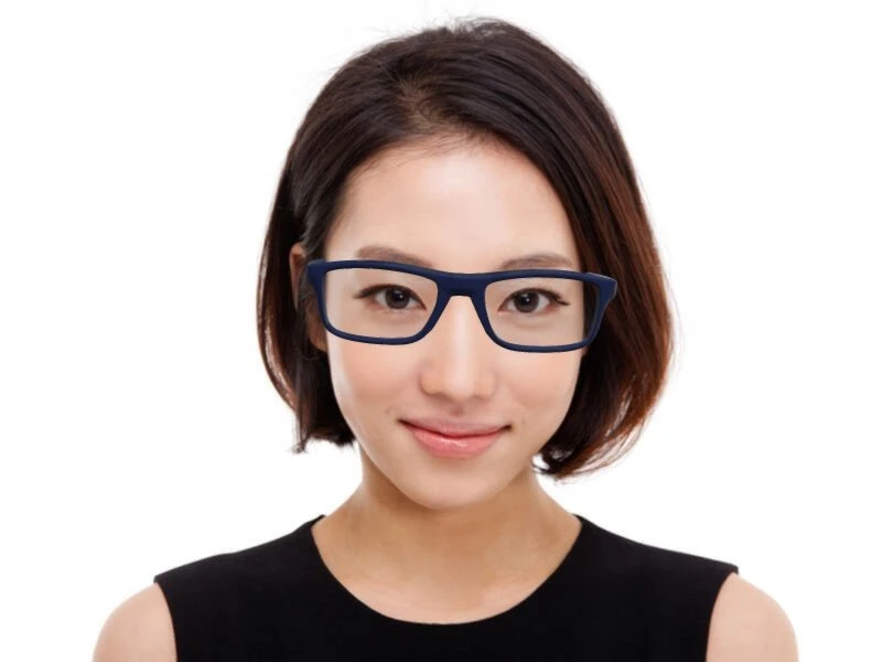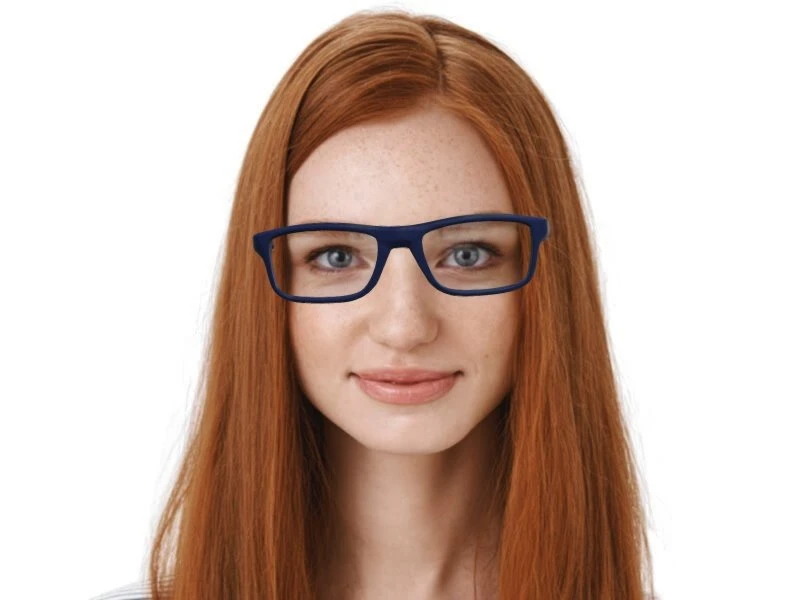 Gesichtsformen. Die Rahmenfarbe ist Blau. Damit ist der Rahmen perfekt für